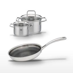 L'ensemble Elo Relief Evolution est un choix judicieux pour les professionnels de la cuisine. La poêle de 24 cm, dotée d'un revêtement antiadhésif ELODUR® Professional sans PFAS, assure une cuisson croustillante et saine, idéale pour saisir à haute température. Les faitouts de 16 cm et 12 cm, en inox robuste, sont parfaits pour mijoter et réchauffer. Le fond capsulé des faitouts permet une répartition uniforme de la chaleur, économisant ainsi de l'énergie tout en préservant les nutriments des aliments. Ces ustensiles sont compatibles avec tous les types de feux, y compris l'induction, et sont faciles à entretenir, passant au lave-vaisselle. Avec Elo, bénéficiez d'une qualité allemande éprouvée depuis 1934, pour des performances culinaires optimales.