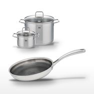 - COMPOSITION : Acier inoxydable 18/10 pour la poêle et les faitouts, avec couvercles en verre pour une cuisson contrôlée.