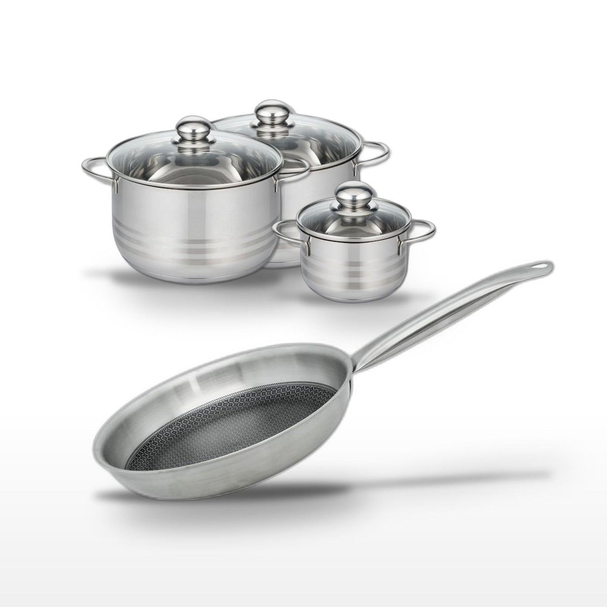 - DESCRIPTION : Ce lot comprend une poêle 24 cm et trois faitouts de 14, 20 et 24 cm, tous en inox de la collection Elo Relief Solution, garantissant une cuisson homogène et saine.
