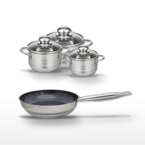 - PETIT + : PETIT + : Le revêtement ELODUR® Professional de la poêle offre une résistance aux rayures, tandis que les faitouts disposent de couvercles en verre pour une cuisson à la vapeur.