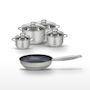 - DESCRIPTION : Ce lot Elo Profi Therm Platinum inclut une poêle céramique 24 cm et quatre faitouts en inox de 14, 16, 20, et 24 cm. Chaque pièce est conçue pour une cuisson homogène et saine sans PFAS.