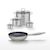- DIMENSIONS : Poêle 24 cm, Faitouts 12 cm (0,6 L), 14 cm (1,2 L), 20 cm (3,4 L), 26 cm (9,5 L).