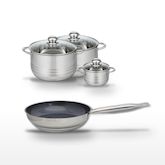 - COMPOSITION : COMPOSITION : Acier inoxydable 18/10 pour la poêle, inox de haute qualité pour les faitouts.