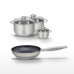 - DESCRIPTION : DESCRIPTION : Ensemble Elo avec poêle céramique 24 cm et trois faitouts en inox pour une cuisson saine et uniforme.