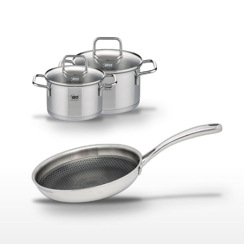 - DESCRIPTION : DESCRIPTION : Ensemble Elo avec une poêle 24 cm et deux faitouts, parfait pour des cuissons variées. Matériaux de haute qualité pour une cuisine saine et efficace.