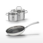 Cet ensemble de cuisine Elo est conçu pour répondre aux exigences des cuisiniers professionnels et amateurs. La poêle 24 cm de la collection Elo Relief Evolution est équipée d'un revêtement antiadhésif ELODUR® Professional qui garantit une cuisson sans accroche et une résistance exceptionnelle aux rayures. Sa structure Triply assure une répartition homogène de la chaleur, idéale pour saisir et dorer les aliments. Les faitouts de 14 cm et 12 cm de la collection Elo Citrin sont parfaits pour mijoter des plats ou cuire des légumes, grâce à leur fond capsulé qui préserve les vitamines. Tous les éléments de cet ensemble sont compatibles avec les plaques à induction et passent au lave-vaisselle, offrant ainsi une grande facilité d'entretien. Avec Elo, bénéficiez d'ustensiles de cuisine de qualité supérieure, alliant performance et esthétique pour sublimer vos préparations culinaires.