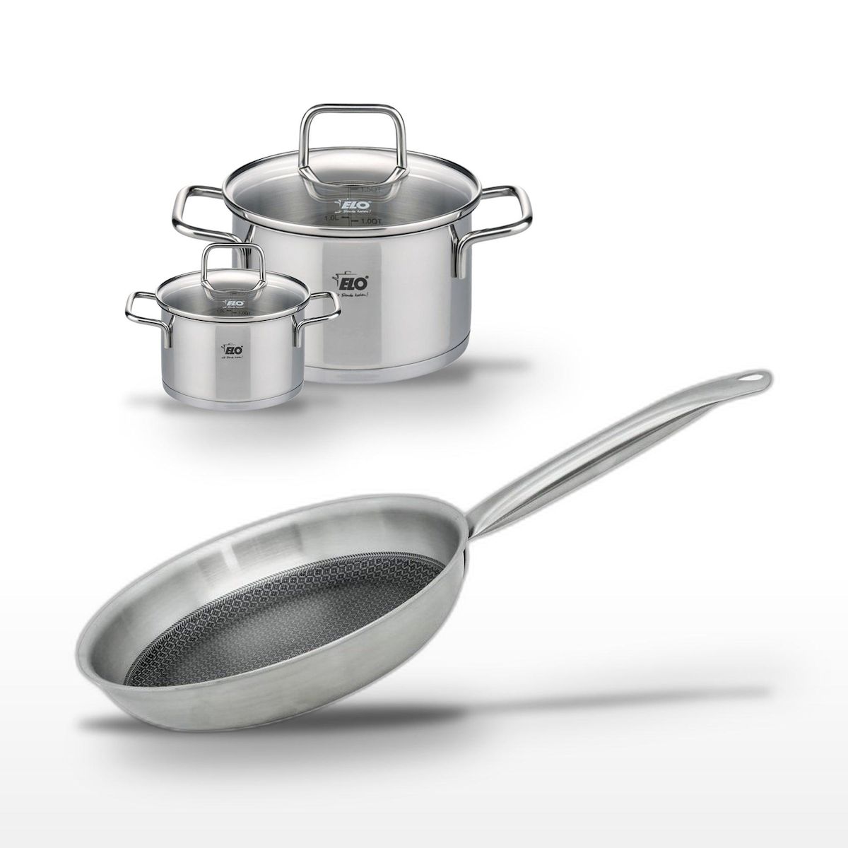 Lot Poêle 24cm et 2 Faitouts 20/12cm Elo Relief Solution