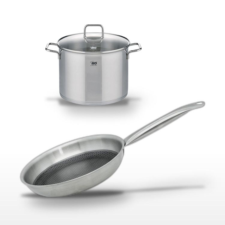 - COMPOSITION : COMPOSITION : Acier inoxydable 18/10 pour la poêle et le faitout, avec revêtement ELODUR® Select sans PFAS pour une cuisine sans souci.