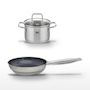 - COMPOSITION : COMPOSITION : Poêle en acier inoxydable 18/10 avec revêtement sans PFAS, faitout en acier inoxydable et verre.
