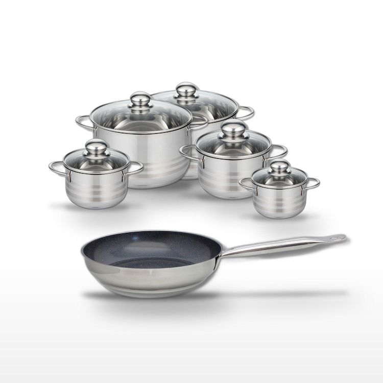 - DESCRIPTION : DESCRIPTION : Ensemble de cuisson Elo incluant une poêle céramique 24cm et cinq faitouts en inox de 12 à 24cm. Conçu pour une cuisson saine et uniforme, sans PFAS.