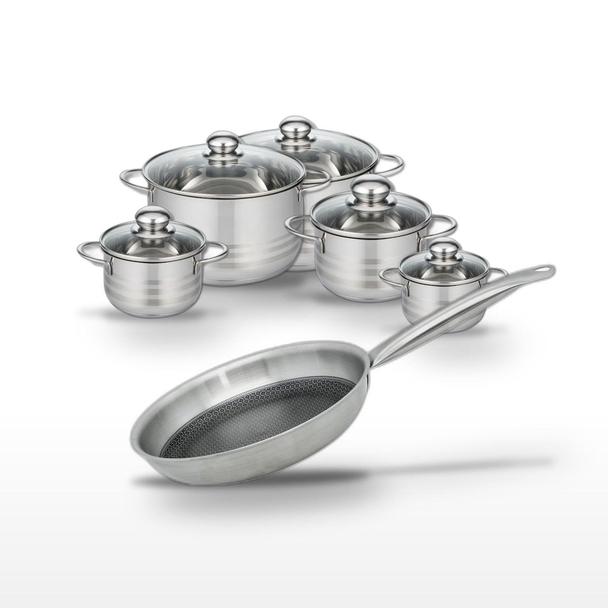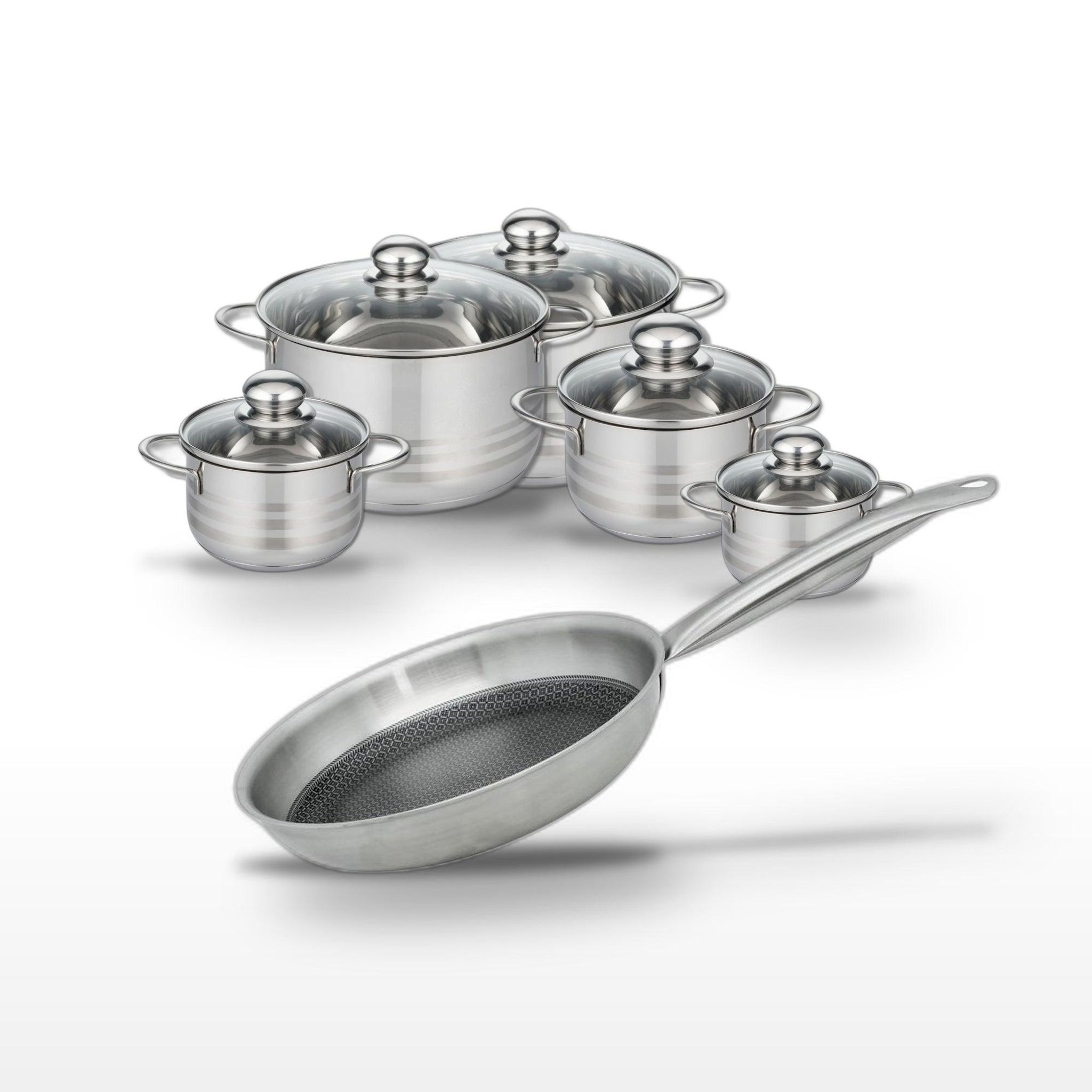 Lot Poêle 24cm & Faitouts 12/14/16/20/24cm Elo Relief Solution