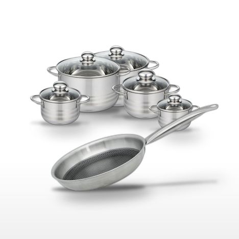 - DESCRIPTION : DESCRIPTION : Ensemble Elo Relief Solution avec une poêle 24 cm et cinq faitouts en acier inoxydable. Idéal pour une cuisine polyvalente et performante.