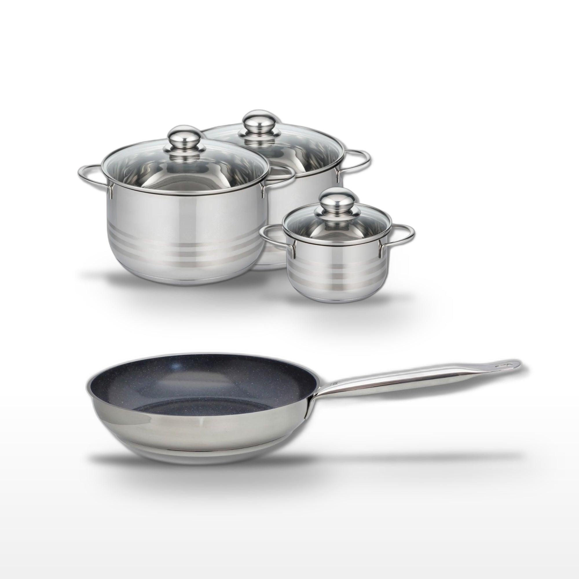 - DESCRIPTION : DESCRIPTION : Ce lot Elo comprend une poêle céramique de 24 cm et trois faitouts en inox de tailles variées, tous garantis sans PFAS pour une cuisine saine.