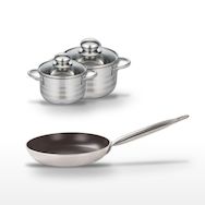 - DESCRIPTION : Ensemble Elo comprenant une poêle de 28 cm en céramique et deux faitouts en inox de 12 cm et 14 cm. Idéal pour une cuisson homogène et saine.