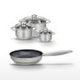 - DESCRIPTION : Ce lot Elo comprend une poêle céramique de 28 cm et trois faitouts en inox de 12, 16 et 20 cm, tous sans PFAS pour une cuisine saine.
