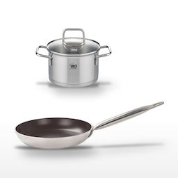 DESCRIPTION : DESCRIPTION : Ce lot Elo inclut une poêle 28 cm en céramique et un faitout 14 cm en inox. Ces ustensiles offrent une cuisson homogène et saine grâce à leurs matériaux de haute qualité.PETIT + : PETIT + : La poêle Elo Bistro Line garantit une cuisson sans matière grasse grâce à son revê