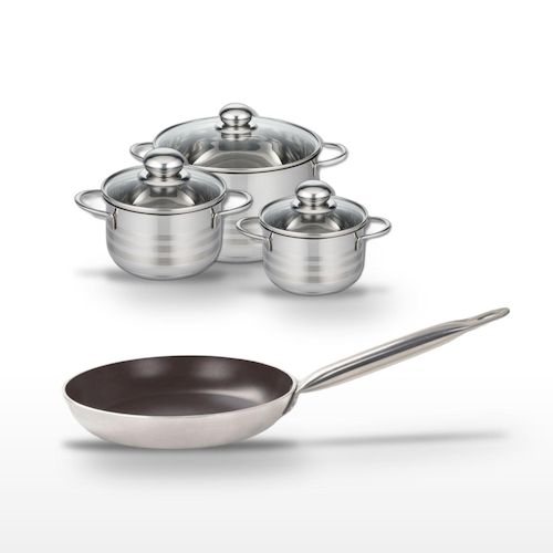 - COMPOSITION : Poêle en aluminium avec revêtement céramique, faitouts en inox de haute qualité, tous sans PFAS.