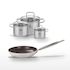 - COMPOSITION : COMPOSITION : Poêle en aluminium avec poignée inox, faitouts en acier inoxydable avec couvercles en verre, garantis sans PFAS.