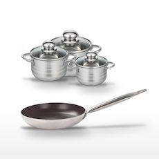 - COMPOSITION : COMPOSITION : Poêle en aluminium et inox, faitouts en acier inoxydable, tous garantis sans PFAS pour une cuisson respectueuse.