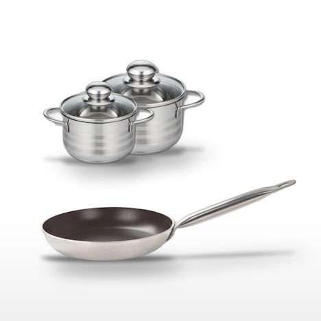 - COMPOSITION : Poêle en aluminium avec revêtement céramique sans PFAS, faitouts en acier inoxydable résistant à la chaleur.