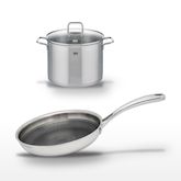 - COMPOSITION : Acier inoxydable 18/10, aluminium pour la poêle, verre pour le couvercle du faitout.