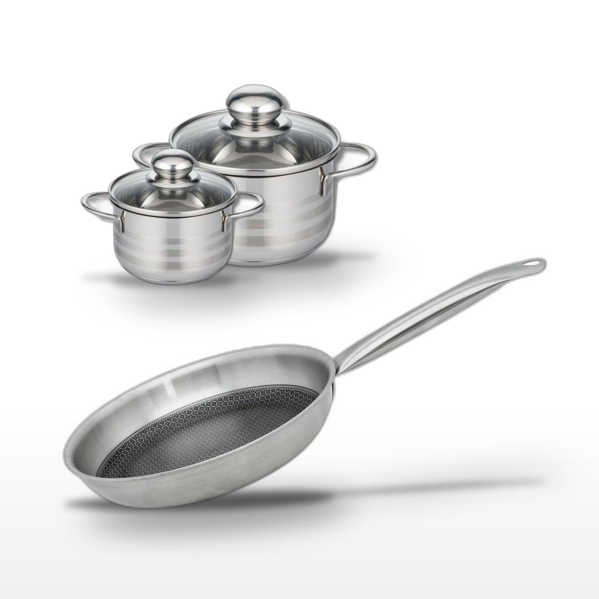 Lot Poêle 28cm & 2 Faitouts 12/16cm Elo Relief Solution