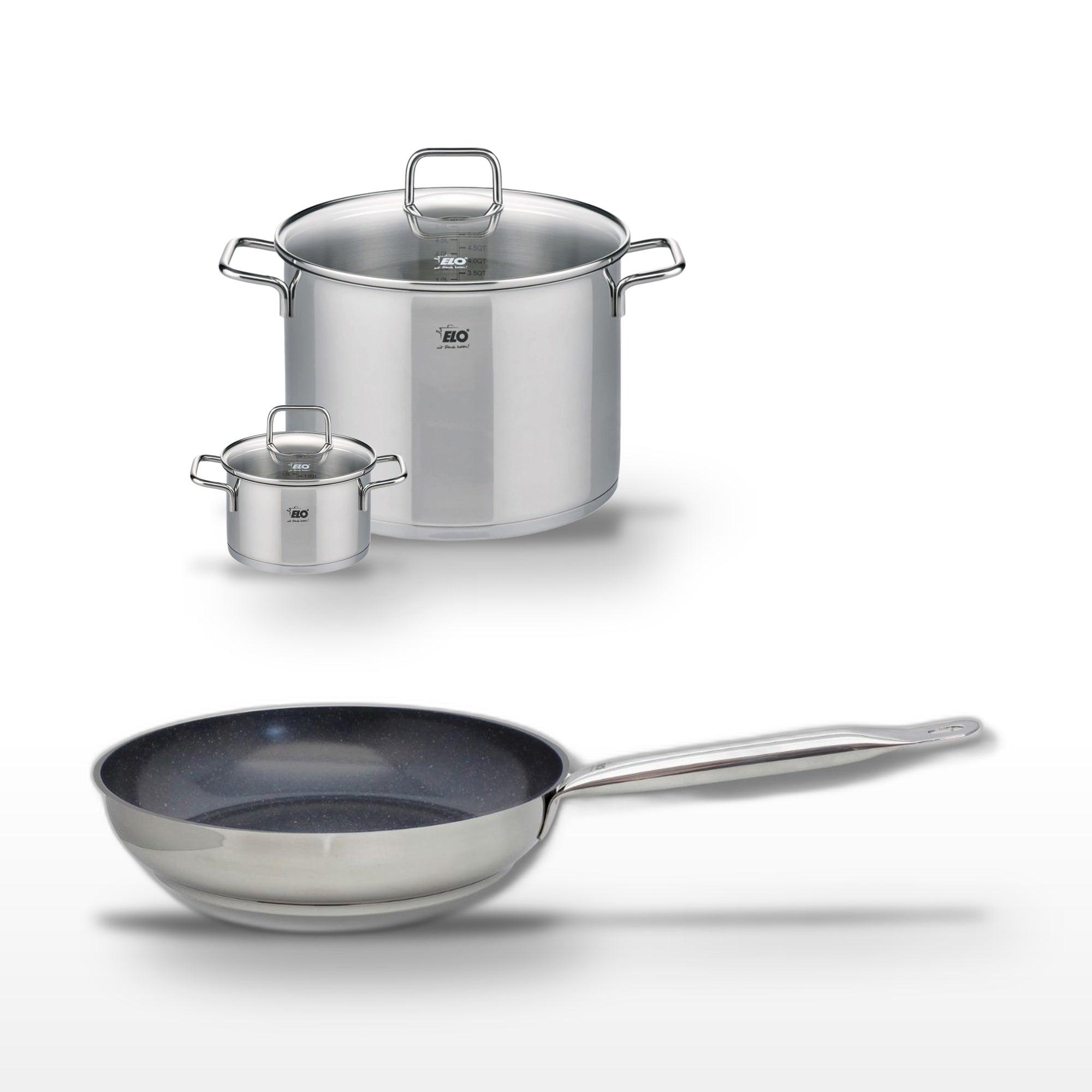 Lot Poêle 28cm & 2 Faitouts 14/26cm Elo Profi Therm Platinum