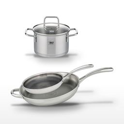 - COMPOSITION : Acier inoxydable 18/10 pour les poêles, faitout en acier inoxydable avec couvercle en verre. Structure Triply pour une diffusion optimale de la chaleur.