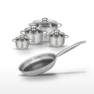 - DESCRIPTION : DESCRIPTION : Ce lot comprend une poêle de 28 cm et quatre faitouts en inox, offrant une cuisson homogène et sans PFAS. Idéal pour une cuisine saine.