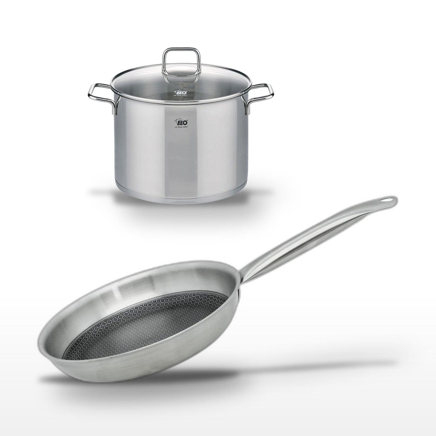 - DESCRIPTION : Ce lot comprend une poêle 28 cm et un faitout 26 cm de la gamme Elo Relief Solution, parfaits pour une cuisson de qualité.