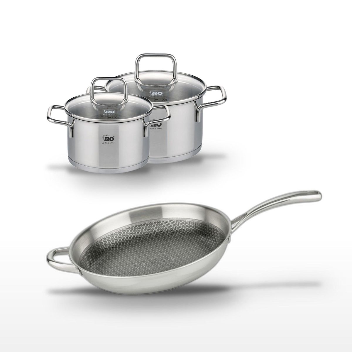 Lot Poêle 32 cm & 2 Faitouts 16/14 cm Elo Relief Evolution