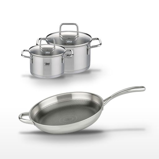 - DESCRIPTION : Le lot Elo Relief Evolution inclut une poêle 32 cm et deux faitouts de 16 et 20 cm, tous en acier inoxydable pour une performance de cuisson exceptionnelle.