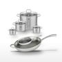 - COMPOSITION : Acier inoxydable 18/10 pour les poêles, fond capsulé et couvercles en verre pour les faitouts.