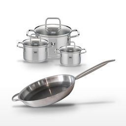 - DESCRIPTION : L'ensemble Elo Relief Solution inclut une poêle de 32 cm et trois faitouts en inox, offrant une cuisson homogène et économe en énergie.
