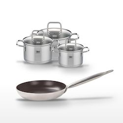 - DESCRIPTION : DESCRIPTION : Ce lot Elo inclut une poêle céramique 32 cm et trois faitouts en inox, idéals pour des cuissons variées.