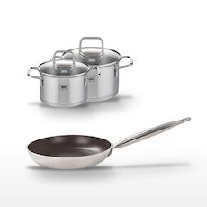 - DESCRIPTION : L'ensemble Elo comprend une poêle 32 cm en céramique sans PFAS et deux faitouts en inox, parfaits pour une cuisson saine et uniforme.