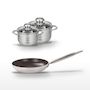 - COMPOSITION : Poêle en aluminium avec revêtement céramique, faitouts en acier inoxydable, tous sans PFAS pour une cuisson saine.