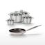 - COMPOSITION : Aluminium et inox pour la poêle, acier inoxydable pour les faitouts, garantis sans PFAS.