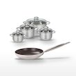- COMPOSITION : Poêle en aluminium et inox avec revêtement céramique sans PFAS. Faitouts en acier inoxydable de haute qualité, résistants à la chaleur.