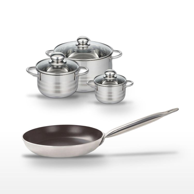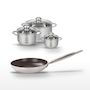 - COMPOSITION : COMPOSITION : Poêle en aluminium et inox, faitouts en acier inoxydable, tous sans PFAS pour une cuisine saine.