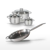 - COMPOSITION : COMPOSITION : Acier inoxydable 18/10 et aluminium pour la poêle, inox sans PFAS pour les faitouts.