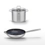 - COMPOSITION : COMPOSITION : Poêle en acier inoxydable avec revêtement sans PFAS, faitout en inox avec couvercle en verre.
