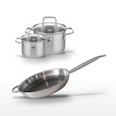 - DIMENSIONS : Poêle Ø 32 cm, Faitout Ø 16 cm et Faitout Ø 12 cm, adaptés à diverses préparations culinaires.