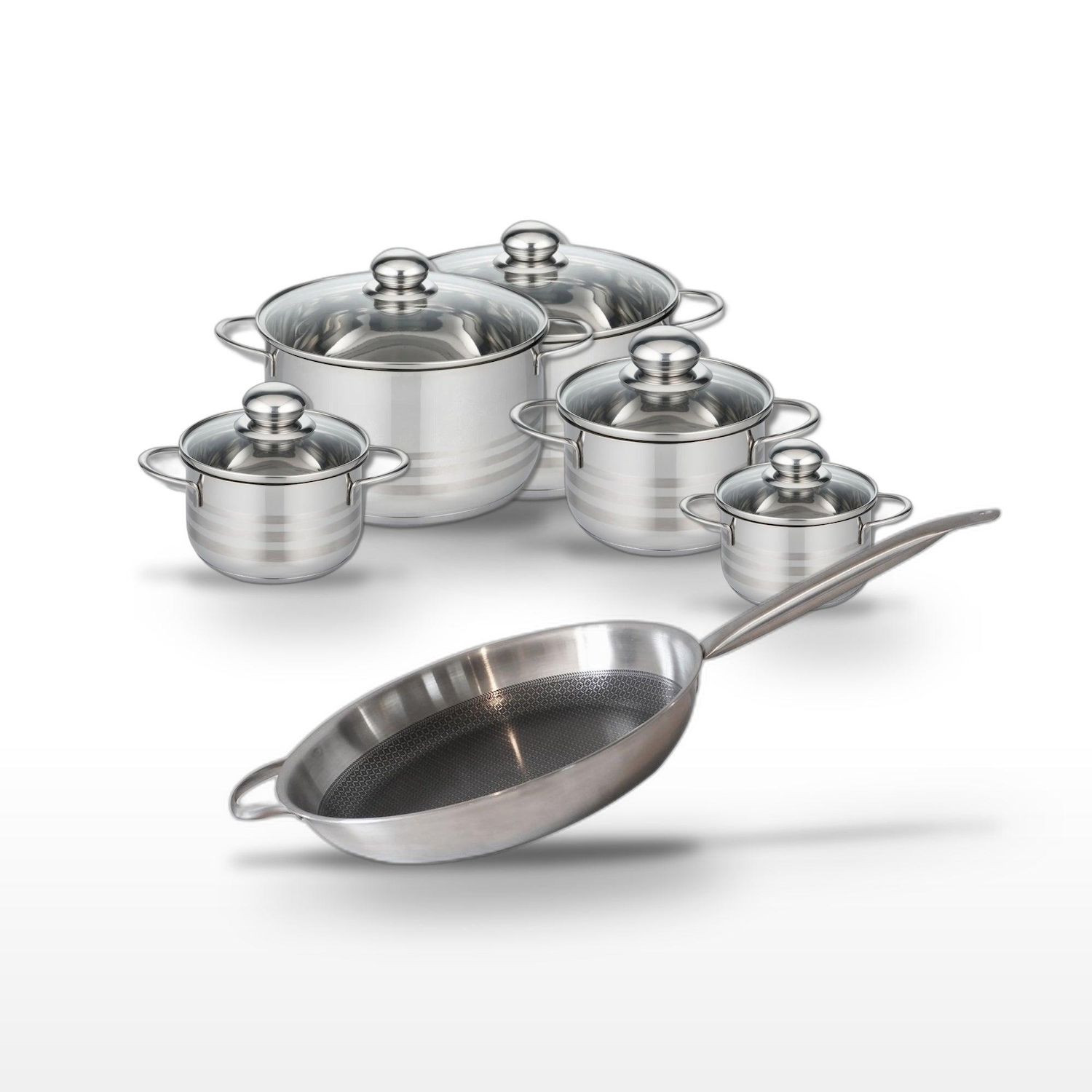 Lot Poêle 32cm & 5 Faitouts Elo Relief Solution