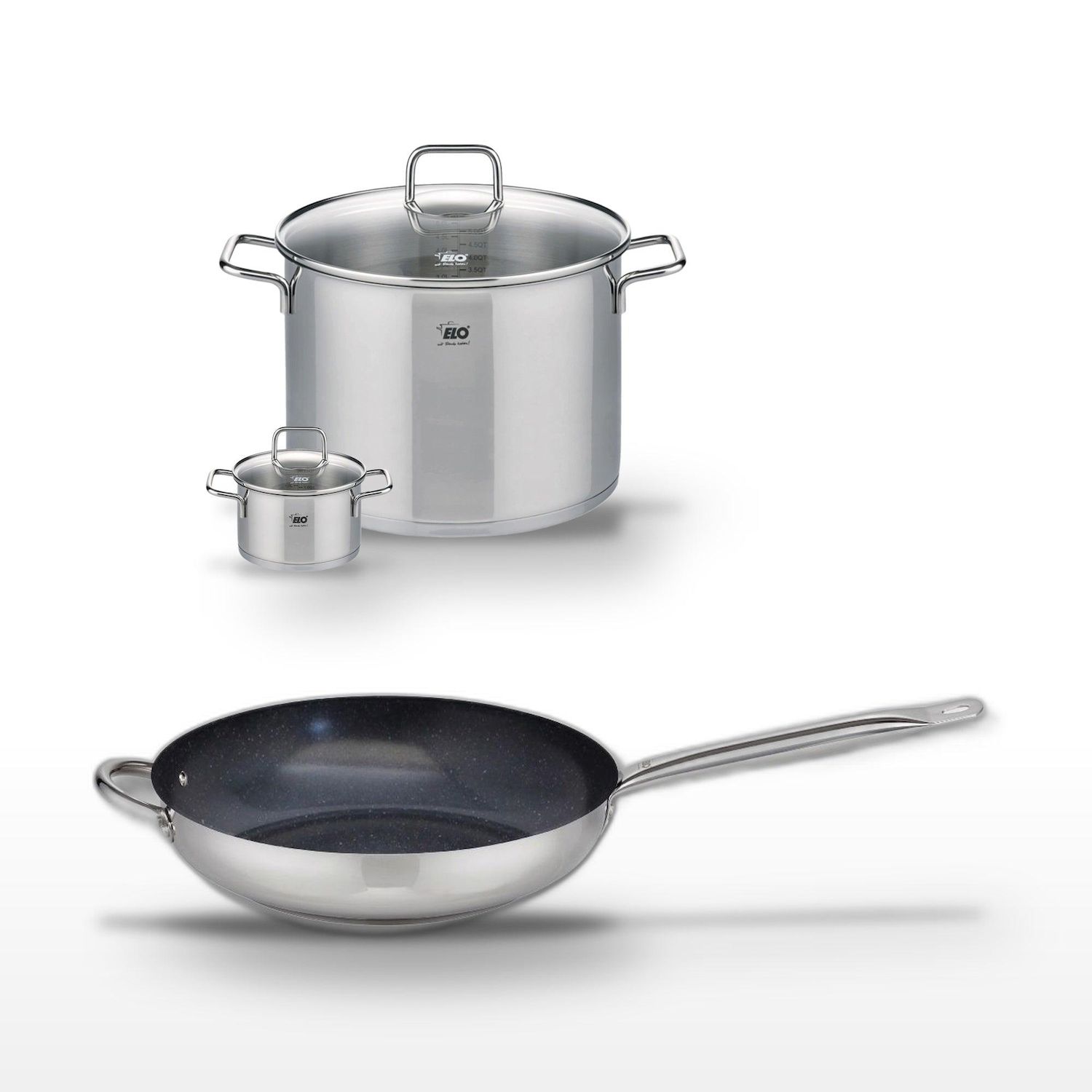 Lot Poêle 32cm Elo Profi Therm Platinum et 2 Faitouts Elo Citrin