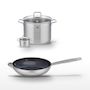 - COMPOSITION : COMPOSITION : Acier inoxydable 18/10, revêtement sans PFAS pour la poêle, verre pour les couvercles.