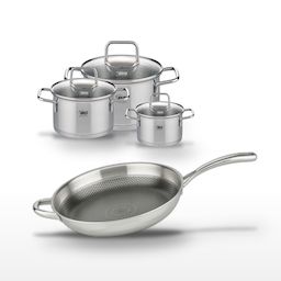 - COMPOSITION : COMPOSITION : Acier inoxydable de haute qualité pour la poêle et les faitouts, avec couvercles en verre pour une visibilité optimale.
