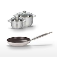 - COMPOSITION : COMPOSITION : Poêle en aluminium avec revêtement céramique, faitouts en acier inoxydable. Tous sans PFAS pour une cuisson respectueuse de la santé.
