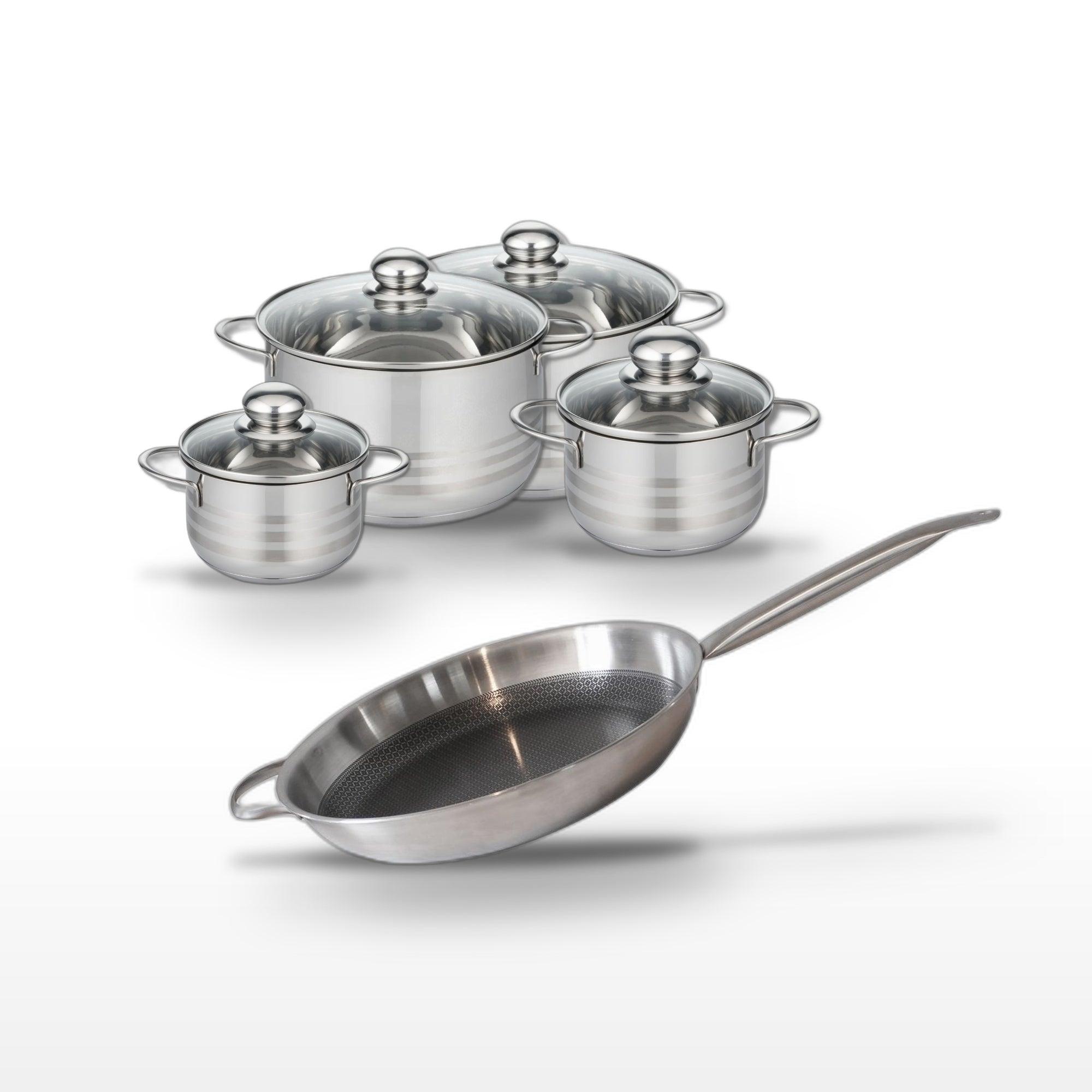 Lot Poêle 32cm et 4 Faitouts 14/16/20/24cm Elo Relief Solution