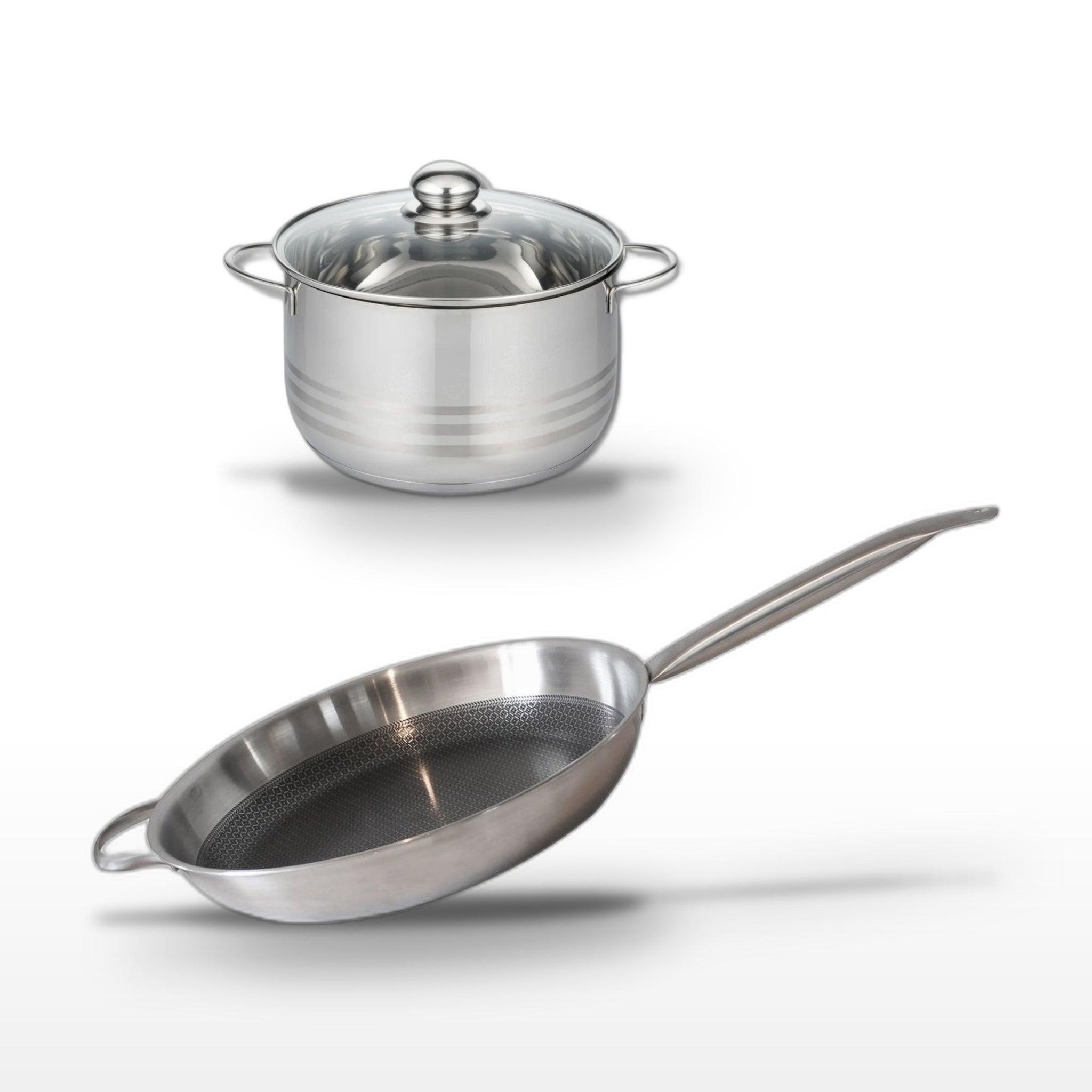 - COMPOSITION : COMPOSITION : Fabriqué avec de l'acier inoxydable 18/10 pour la poêle, et de l'inox pour le faitout, ces ustensiles assurent robustesse et élégance.